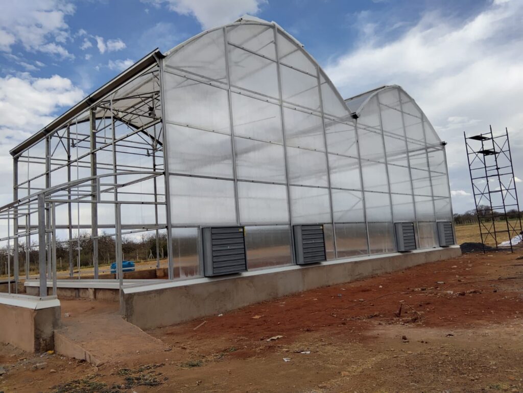 Modern steel greenhouse structure designed for durability, ventilation, and optimal crop production.